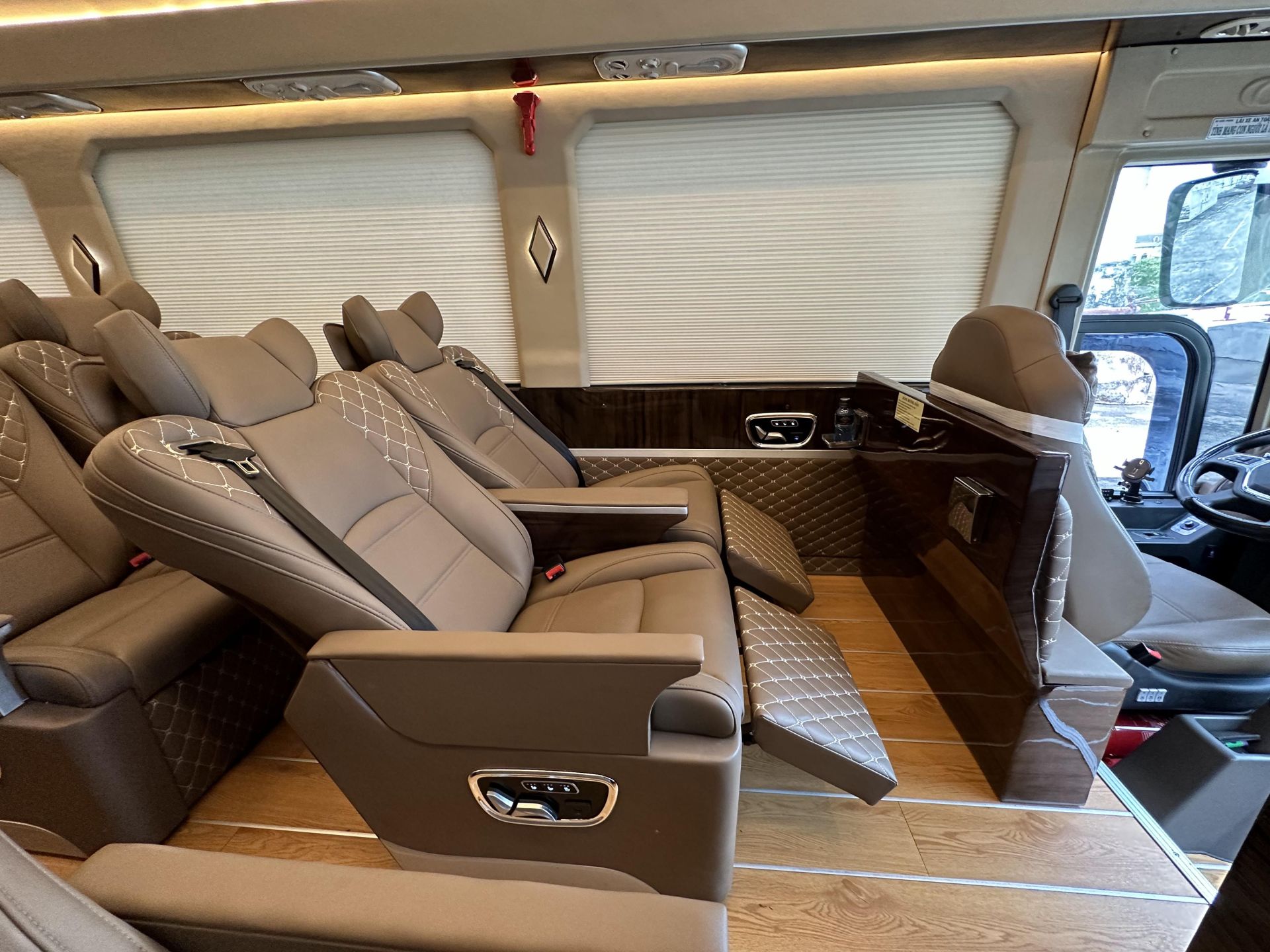 - Bệ bước tự động - Bệ để chân chỉnh cơ - Bộ tem AutoKingdom - Âm thanh cơ bản - Hệ thống làm mát lưng theo lựa chọn - Hệ thống đèn LED chiếu sáng - Ổ sạc USB cho từng ghế - Ốp da công nghiệp toàn xe - Rèm cơ không dây ngăn tia UV - Sàn gỗ công nghiệp
