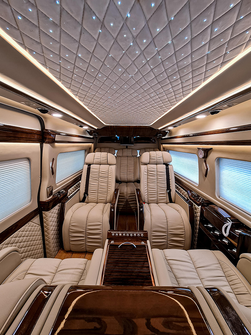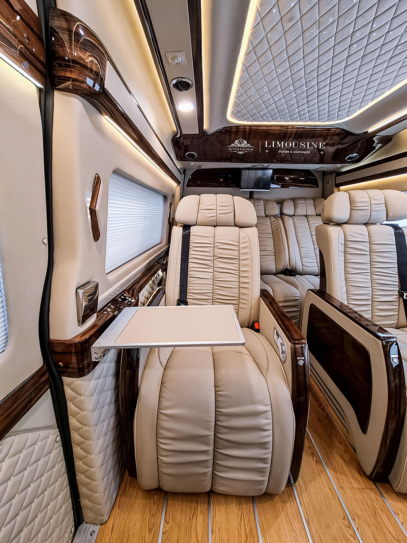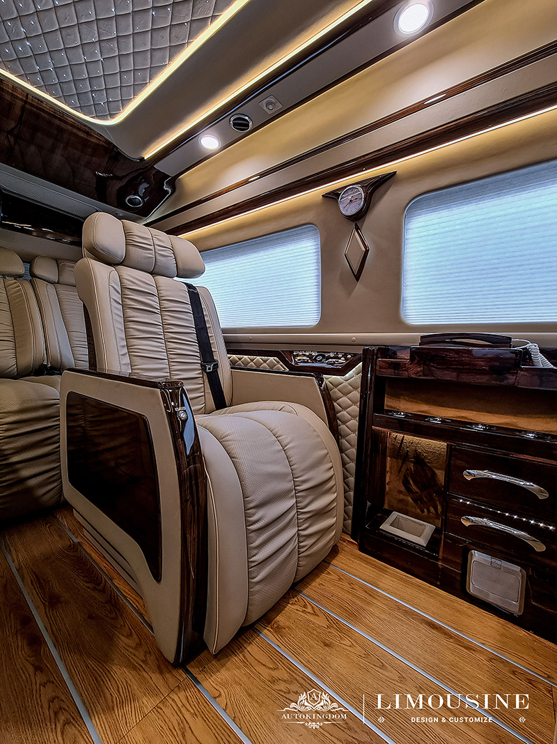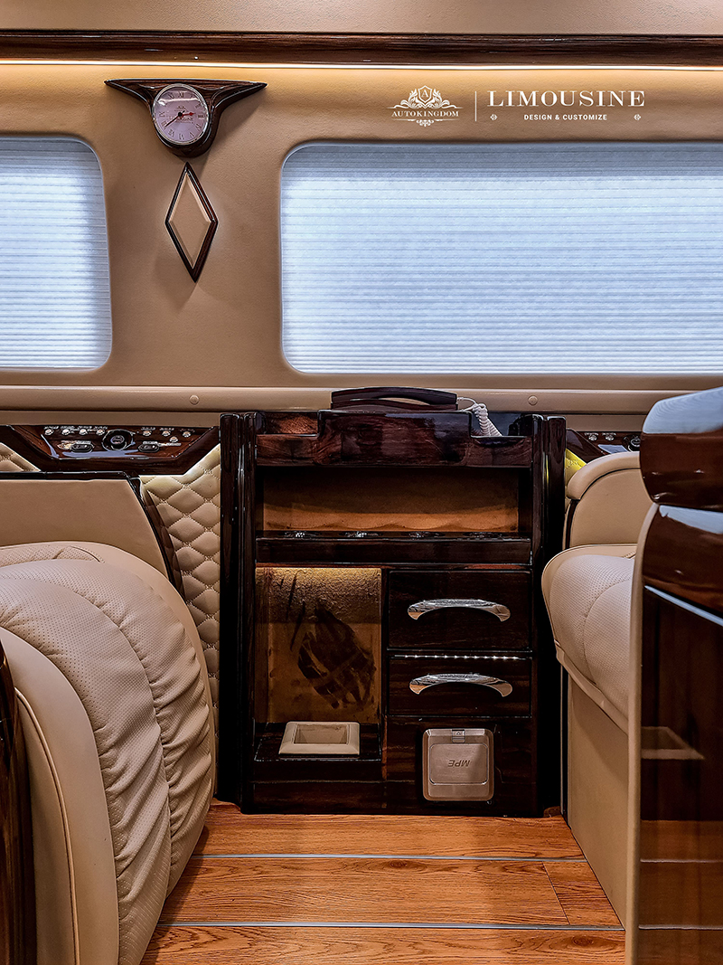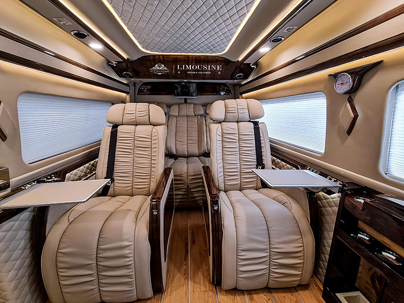 Để đáp ứng nhu cầu ngày càng cao của thị trường vận tải hành khách, AutoKingdom đã không ngừng cải tiến sản phẩm xe khách Limousine ngày càng hoàn thiện hơn với các trang thiết bị dành riêng cho từng hành khách. Ford Transit Limousine 2022 - Dòng VIP có không gian ghế ngồi rộng rãi, thoải mái như một khoang hạng nhất của máy bay. Lối đi cực kỳ rộng rãi có thể để được 1-2 vali hành khách. Đặc biệt với giá bán cực kỳ hợp lý rất phù hợp với mọi hình thức kinh doanh vận tải và nhanh chóng thu hồi vốn.